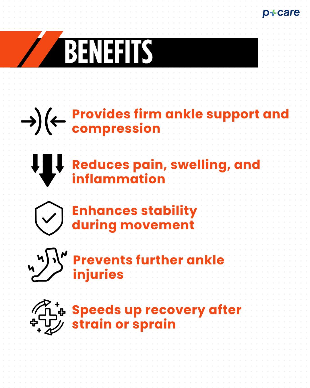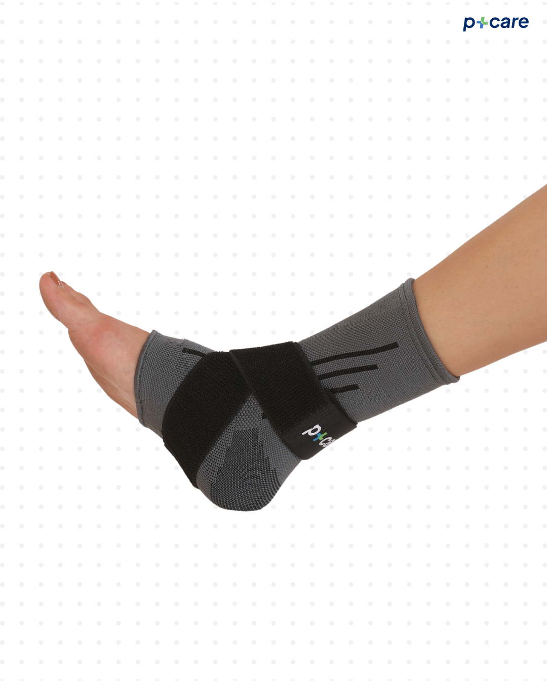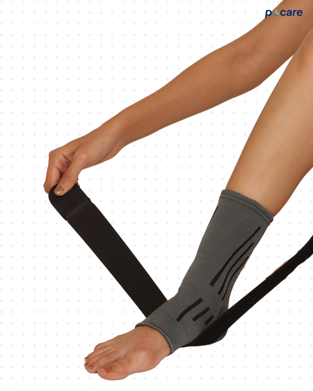 Users Instruction :- Place wrap on ankle and attach distal and proximal straps, hold both medial and lateral stretch compression straps, cross straps in front of brace and secure to desired comfort