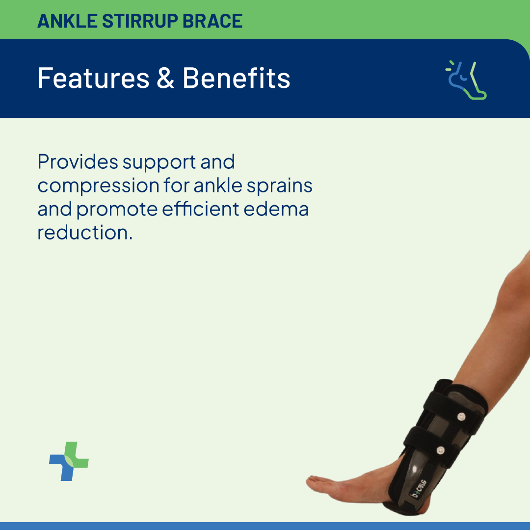 Features: Provides support and compression for ankle sprains and promote efficient edema reduction