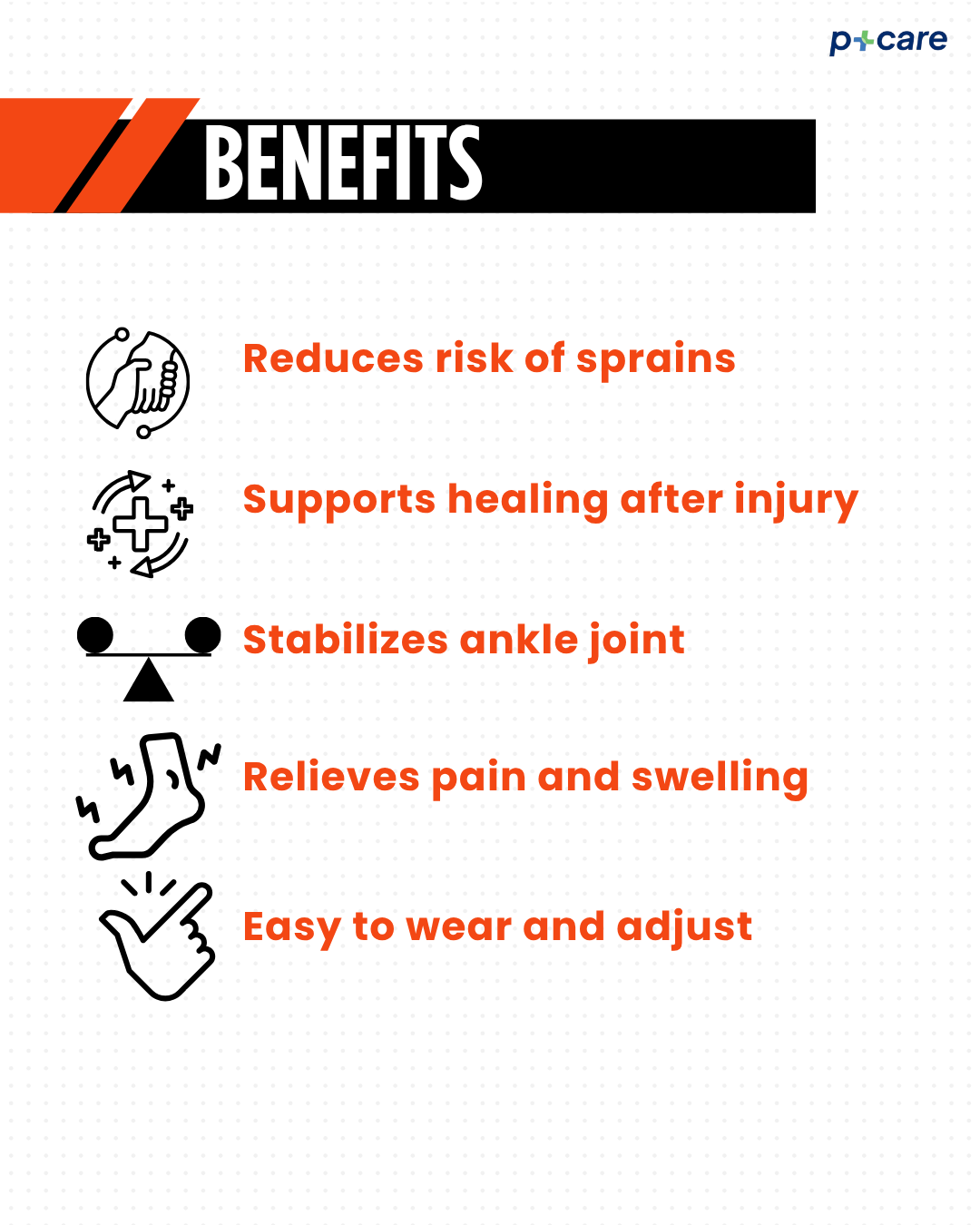 Indication :- Indicated for treatment of ankle strains or sprains and athletic protection