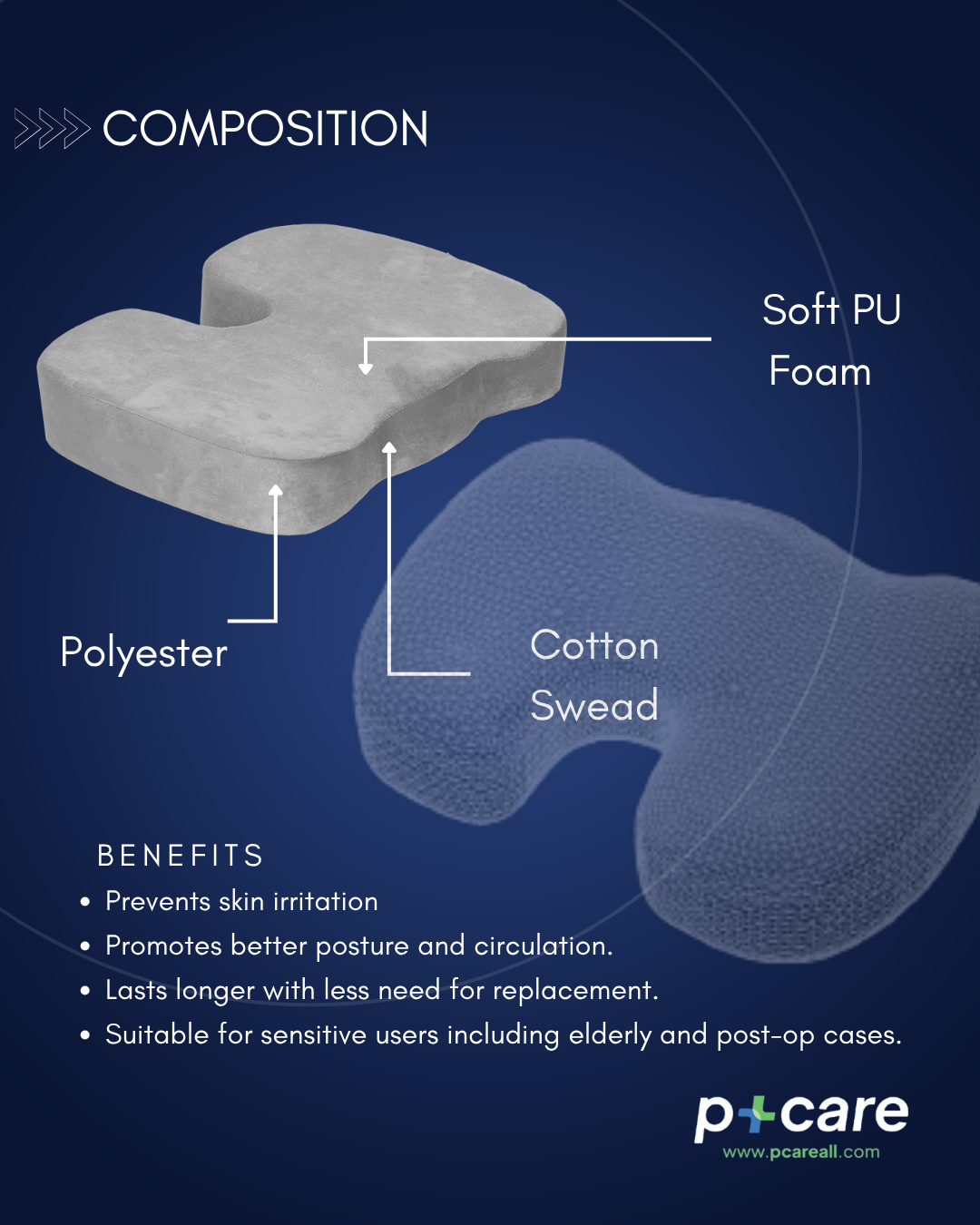 Users Instruction :- Sit on the cushion such that the tail bone rests across to have no pressure on the tail bone