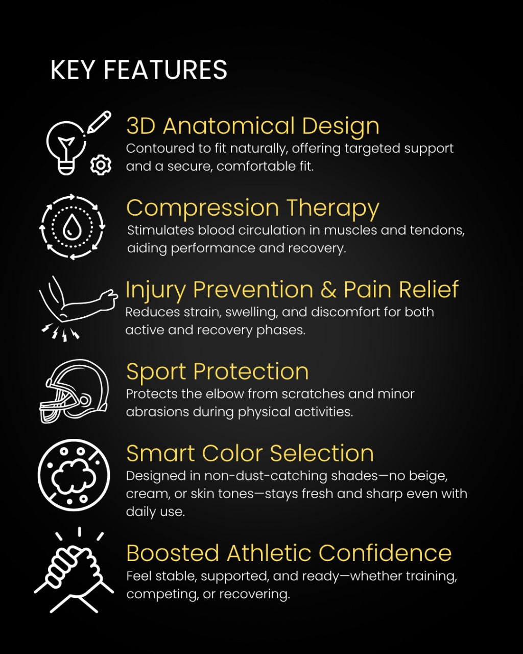 Features: Features scientific (3D) design ensures support, warmth, protection and compression for the elbow