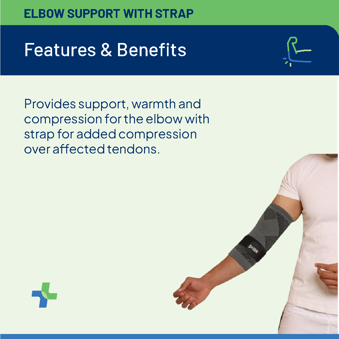 Indication :- Indicated for treatment of medical or lateral epicondylitis, elbow injuries and athletic protection