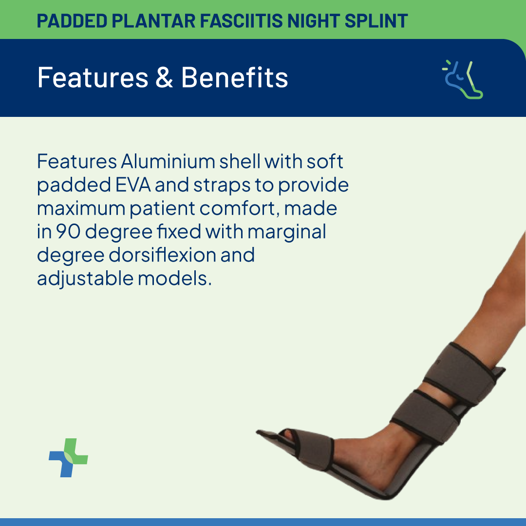 Indication :- Indicated for treatment of plantar fasciitis, Achilles tendonitis, planter flexion contractures, heel spurs and other lower leg over-use injuries