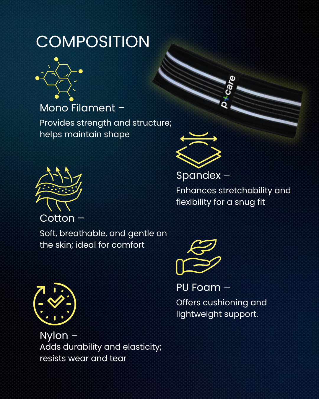 Content :- Mono Filament, Cotton, Nylon, PU Foam, Spandex