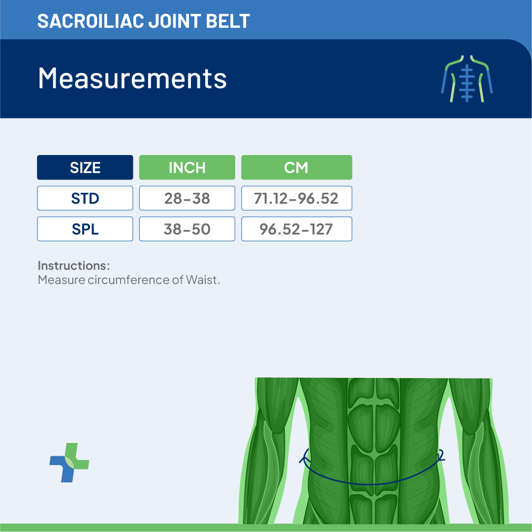 Features: Designed to provide stability to the sacroiliac joint comes with non-elastic layer that simulates the role of ligaments. With extra Double elastic layer incorporated to apply compression and assist in maintaining proper posture