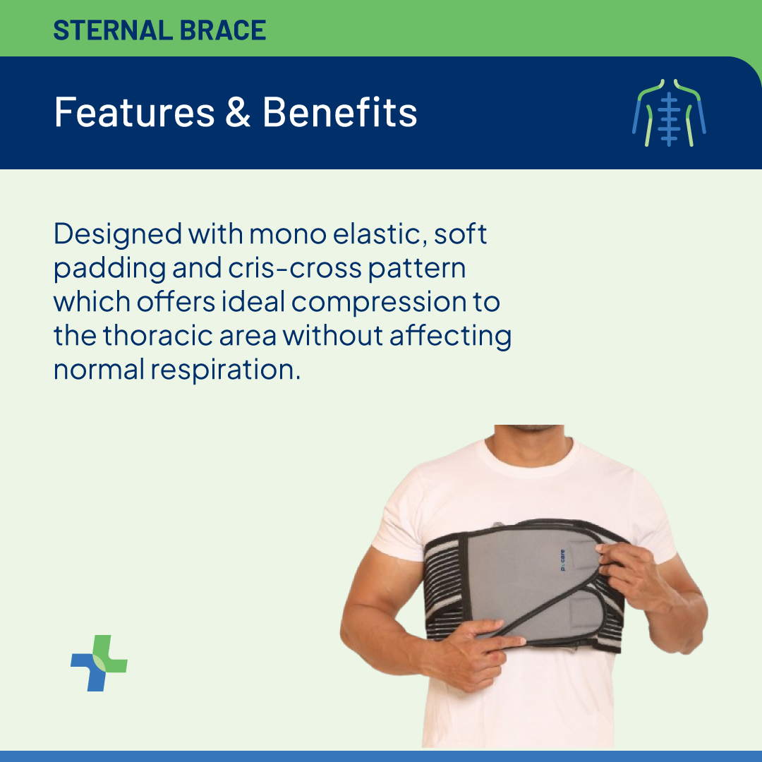 Users Instruction :- Fix the foam pad in the sternum region, wrap the brace around the chest and fasten the contact closure as comforts